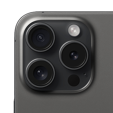 | Enregistrement vidéo | Enregistrement vidéo 4K à 24, 25, 30 ou 60 i/s Enregistrement vidéo HD 1080p à 25, 30 ou 60 i/s Enregistrement vidéo HD 720p à 30 i/s Mode Cinématique jusqu’à 4K HDR à 30 i/s Mode Action jusqu’à 2,8K à 60 i/s Enregistrement vidéo HDR avec Dolby Vision jusqu’à 4K à 60 i/s Enregistrement vidéo ProRes jusqu’à 4K à 60 i/s avec enregistrement externe Enregistrement vidéo Log Système d’encodage ACES (Academy Color Encoding System) Enregistrement vidéo en macro, avec ralenti et accéléré Prise en charge du ralenti en 1080p à 120 ou 240 i/s Accéléré avec stabilisation Accéléré en mode Nuit Vidéo QuickTake Système de 2ᵉ génération de stabilisation optique de l’image par déplacement du capteur pour la vidéo (objectif principal) Système de stabilisation optique de l’image par déplacement du capteur 3D et mise au point automatique pour la vidéo (téléobjectif) Zoom numérique jusqu’à 9x (iPhone 15 Pro) et 15x (iPhone 15 Pro Max) Zoom audio Flash True Tone Stabilisation vidéo de qualité cinéma (4K, 1080p et 720p) Mise au point automatique continue Prise de photos 8 Mpx pendant l’enregistrement vidéo 4K Zoom lecture Formats vidéo disponibles : HEVC, H.264 et ProRes Enregistrement stéréo |
