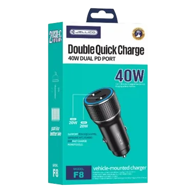Jellico F8 - Adaptateur Allume-Cigare USB-C x2 40W Noir