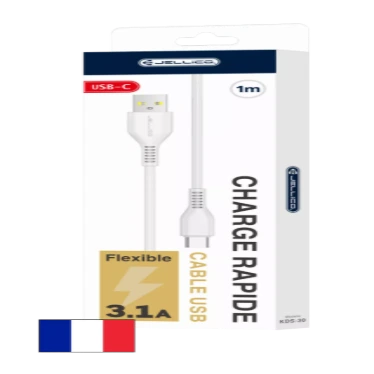 Jellico KDS-30 Câble USB vers USB-C 1 m – Charge 3.1A Blanc