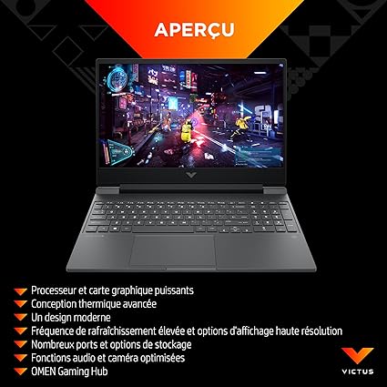 PC portable – HP Victus 15-fa1001sf – Windows 11 Home – 15,6″ – Intel Core i5-12500H – 16Go – NVIDIA GeForce RTX 4050 6GB